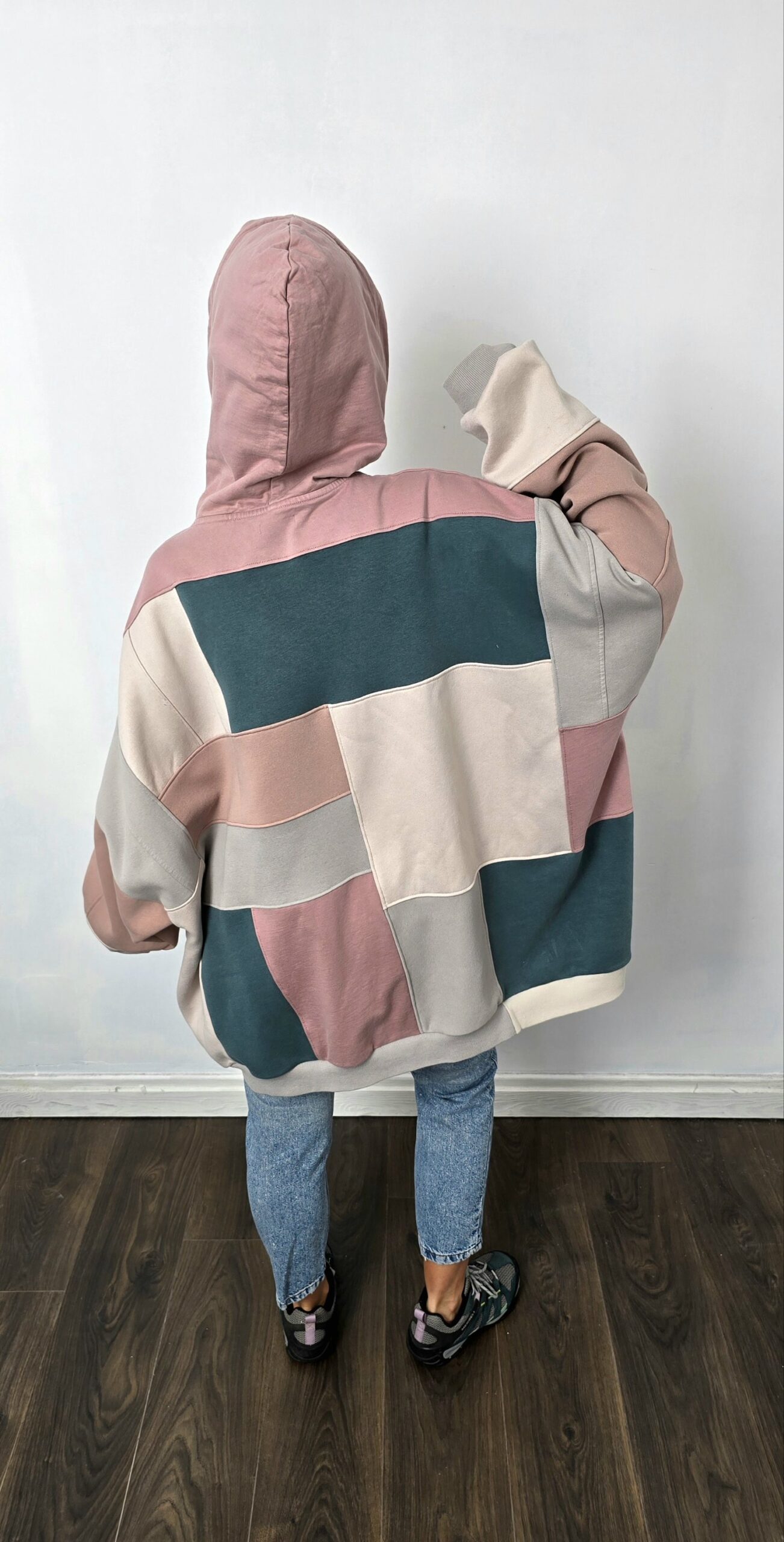 Fason: oversize large – swobodny, obszerny, wygodny krój, idealny dla osób, które lubią czuć się komfortowo i wyróżniać się stylem. Posiada dwie kieszenie oraz kaptur.