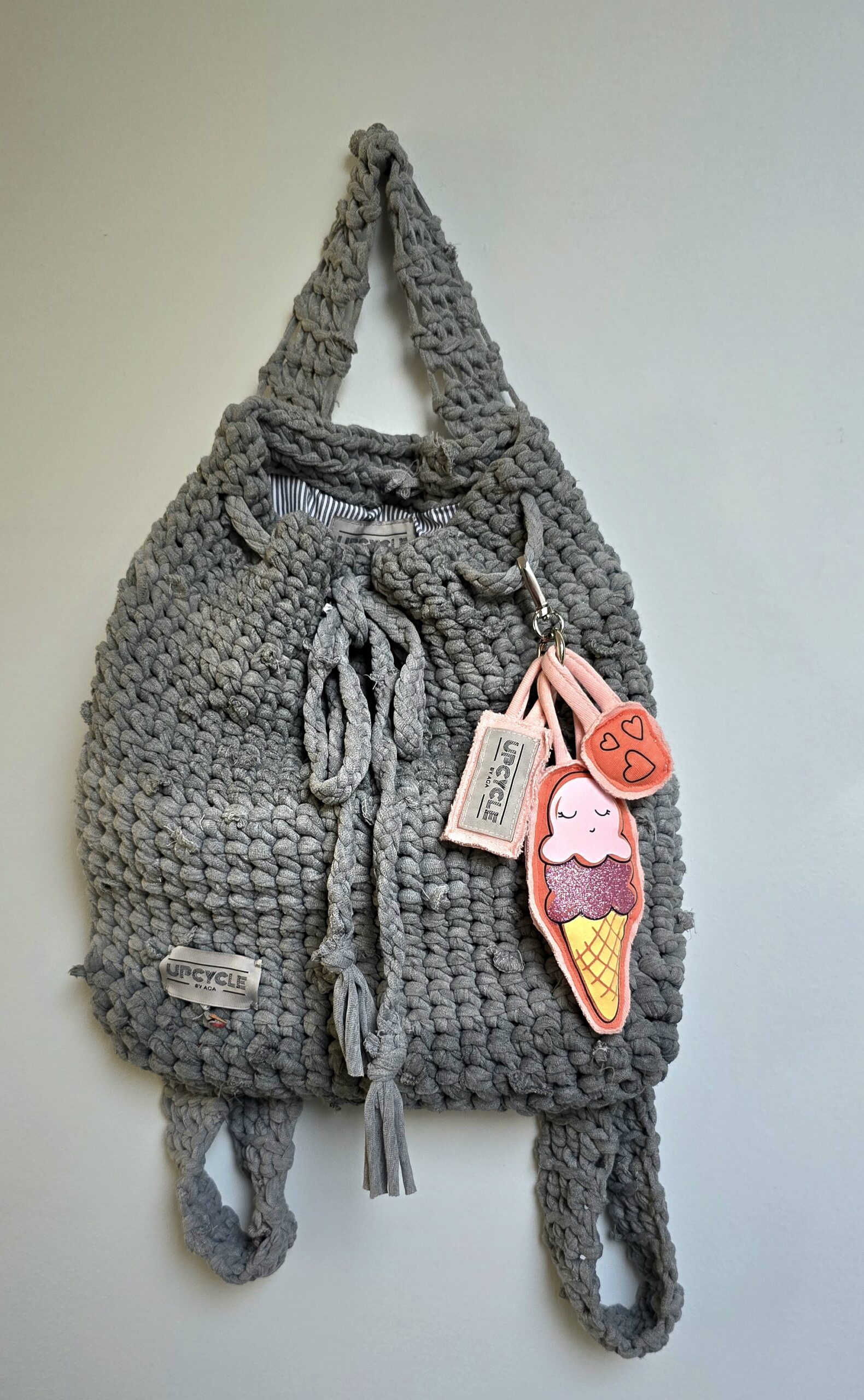 Dla tych, którzy lubią wyróżniać się w tłumie drobnymi, oryginalnymi dodatkami, takimi jak brelok. Widoczny detal, a robi różnicę! Ten brelok powstał z fragmentów bluzy i koszulki z ciekawym nadrukiem z lodami i serduszkami. Brelok składa się z trzech zawieszek. Ten wyjątkowy dodatek idealnie uzupełni wygląd plecaka, torby czy też kluczy.