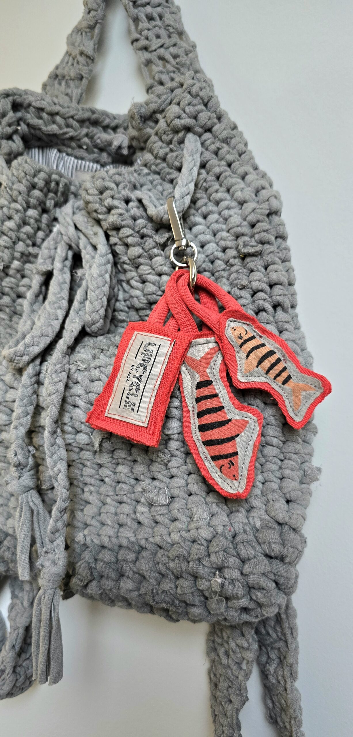 Idea: to kreatywne wykorzystanie resztek odzieży, która zyskała drugie życie w formie praktycznego i designerskiego akcesorium. Każda zawieszka z nadrukiem jest w 3D, wypełnienie to drobne ścinki materiałów, totalny upcycling.